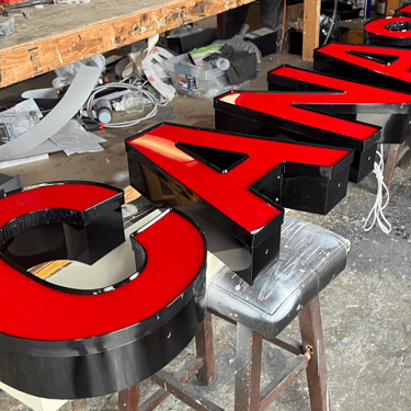 Channel letters are custom-shaped, three-dimensional letters with built-in LED lighting, designed to display your business name with high visibility.