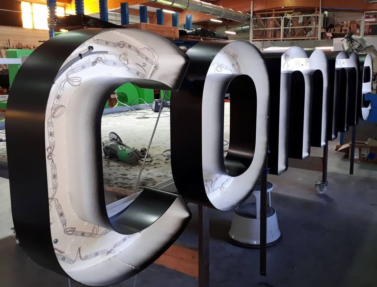 Custom-shaped letters that light up your business name with Texas-made durability.